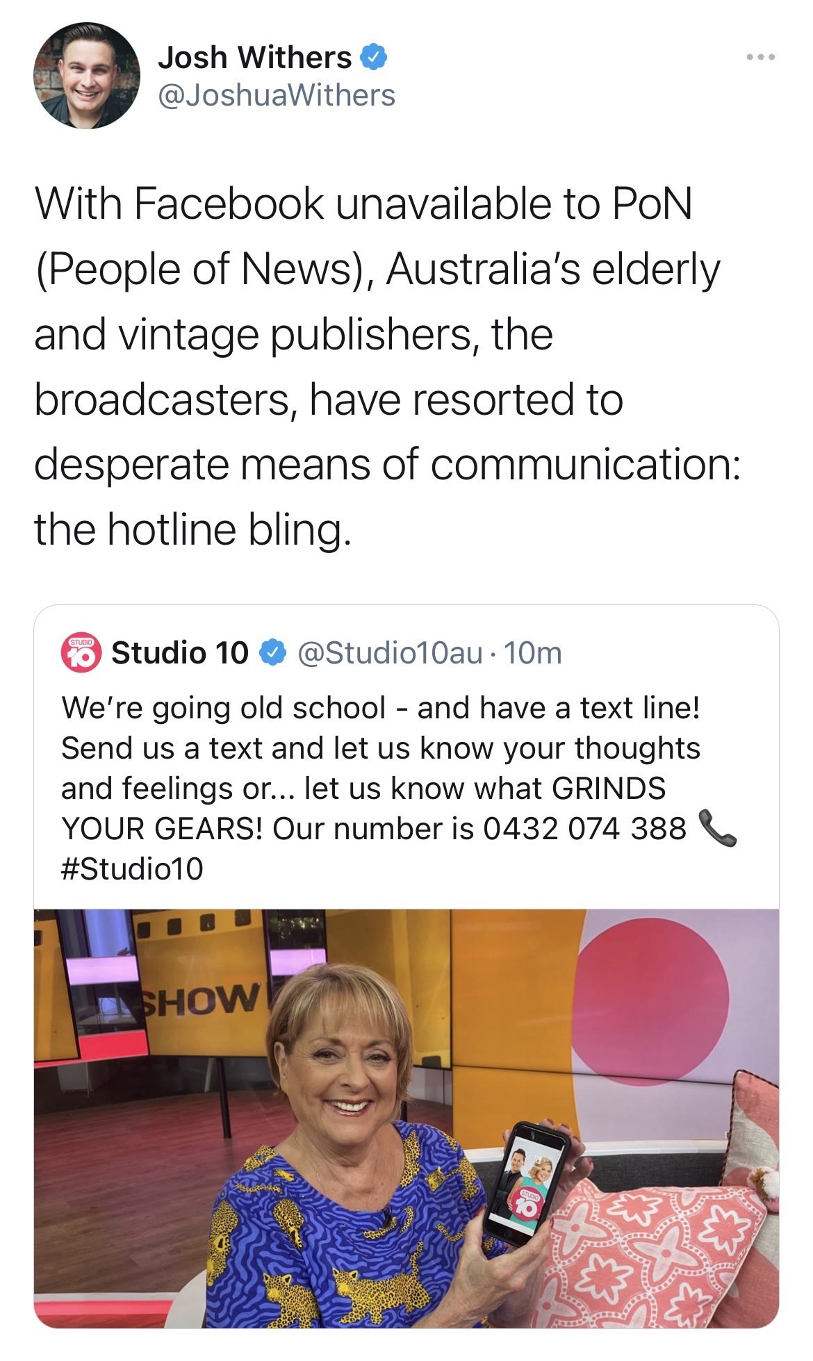 “Why Josh was never invited back onto Studio 10”