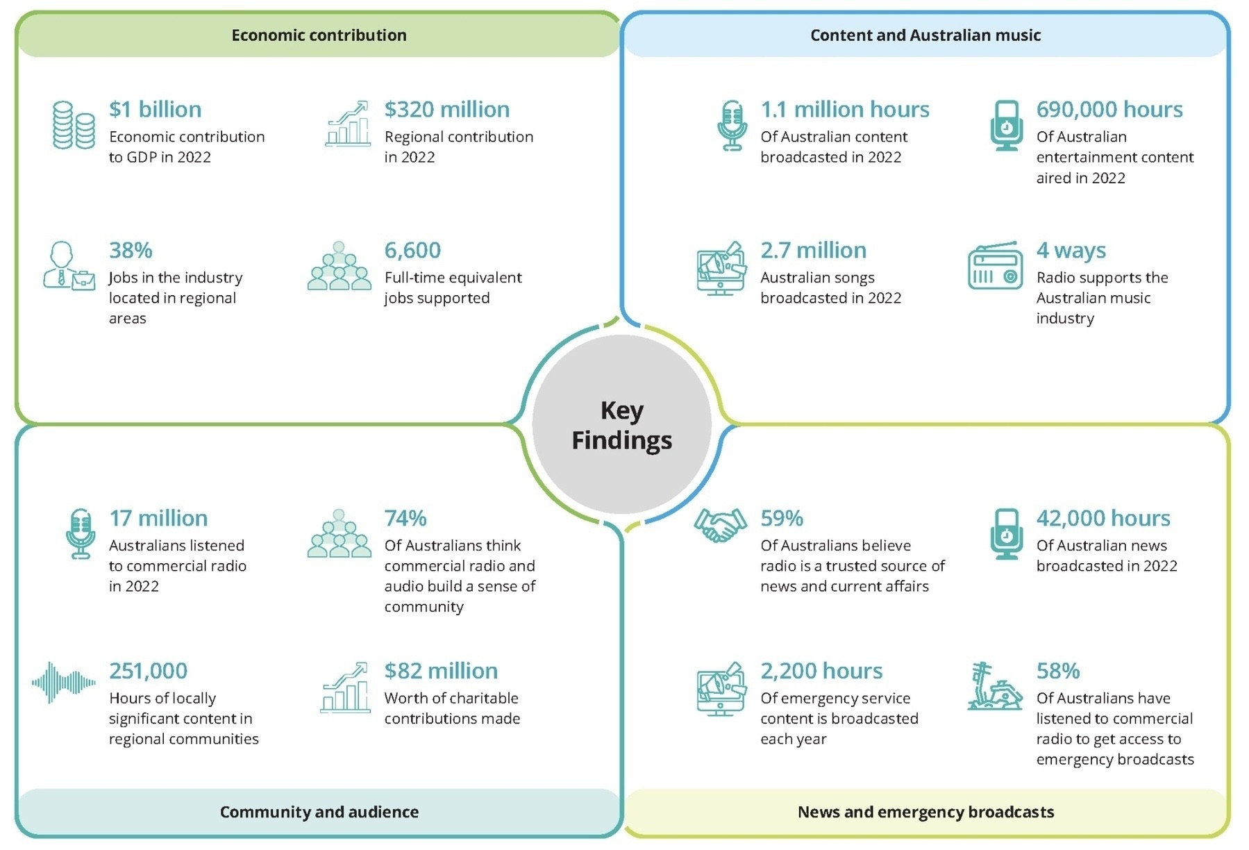 - 74% of Australians surveyed answered “sure, why not” when asked if they think commercial radio and audio build a sense of community.