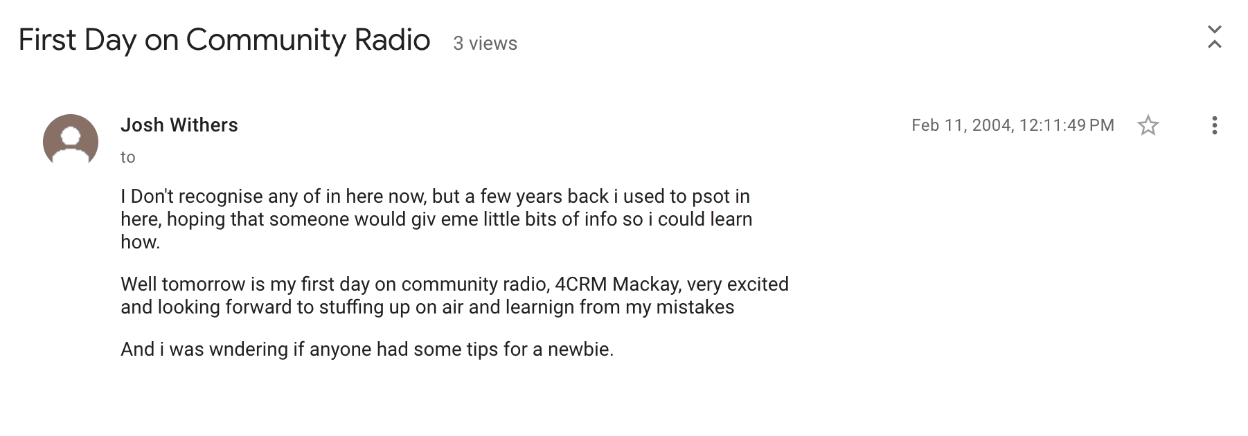This post to the usenet group aus.radio.broadcast recalls the moment in terific hi skool dropout englissh