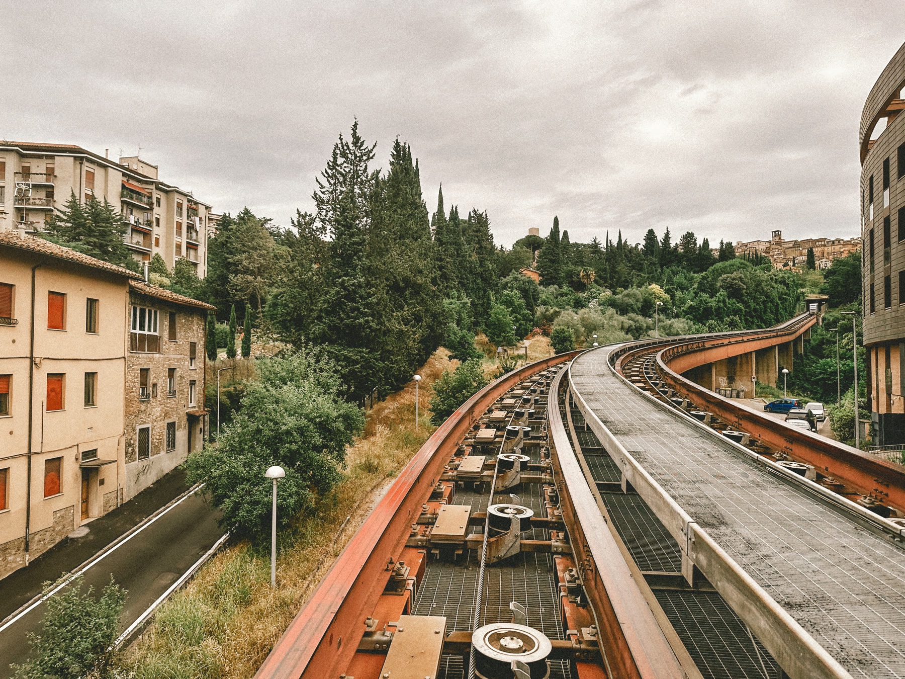 My local laundromat in Passignano is closed on Sundays so I journeyed over to Perugia, Umbria, for my clothes washing today, caught a glance of something that looked like a monorail, turned out it was a MiniMetro, a “family of cable propelled automated people mover systems”