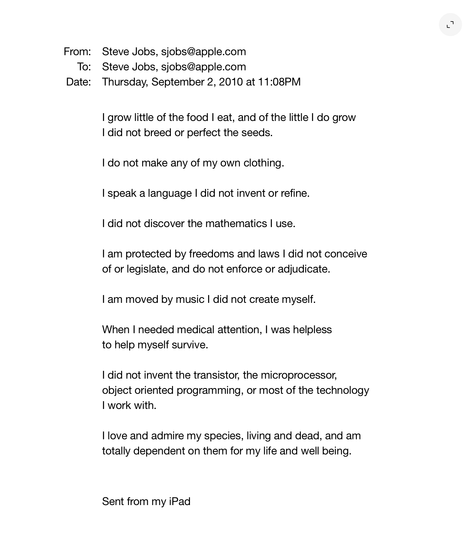 I think about this email that Steve Jobs wrote to himself a lot