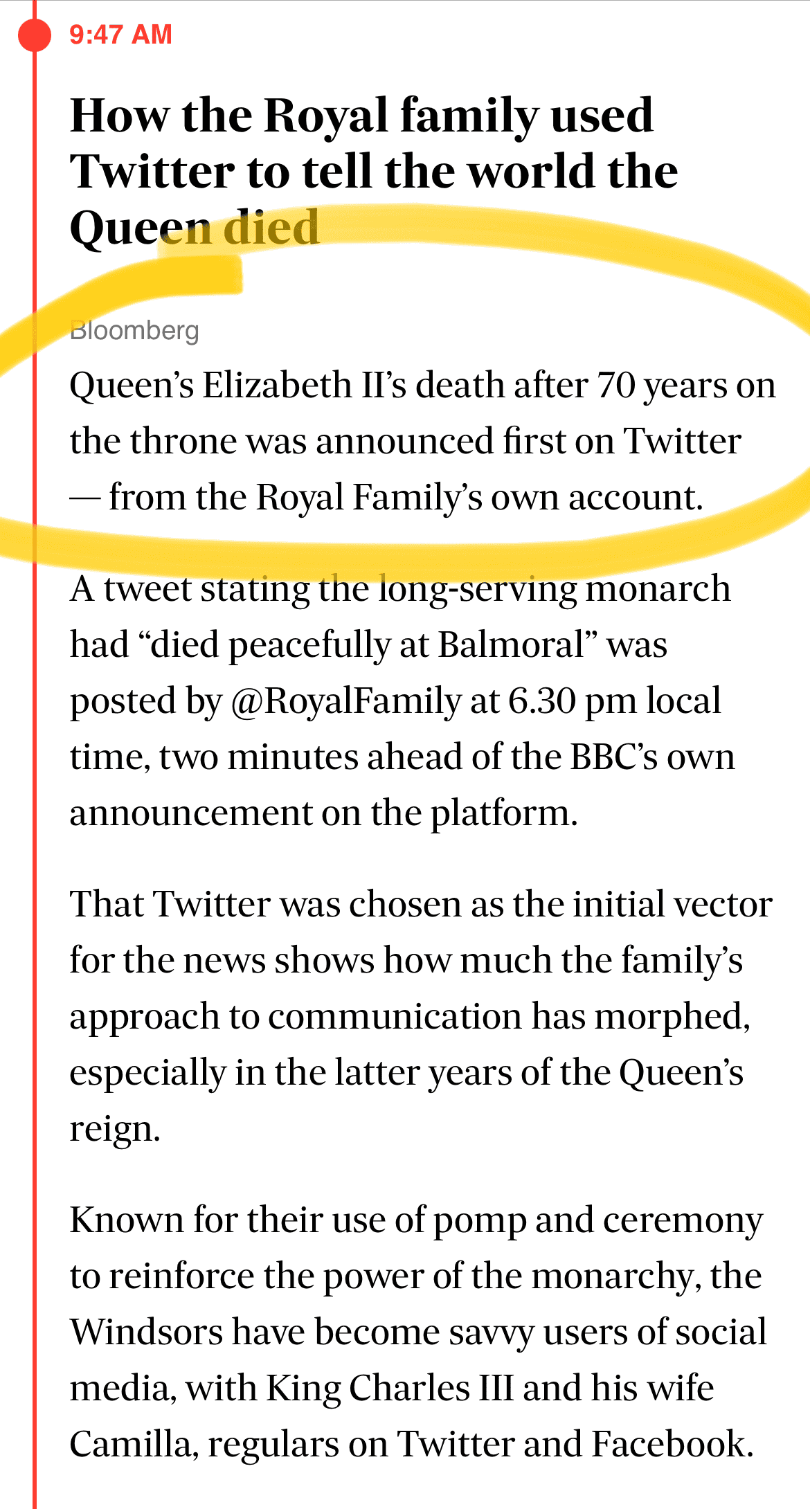 “The world’s papers will be full of obituaries of the queen today. This is the life of Elizabeth Windsor.”