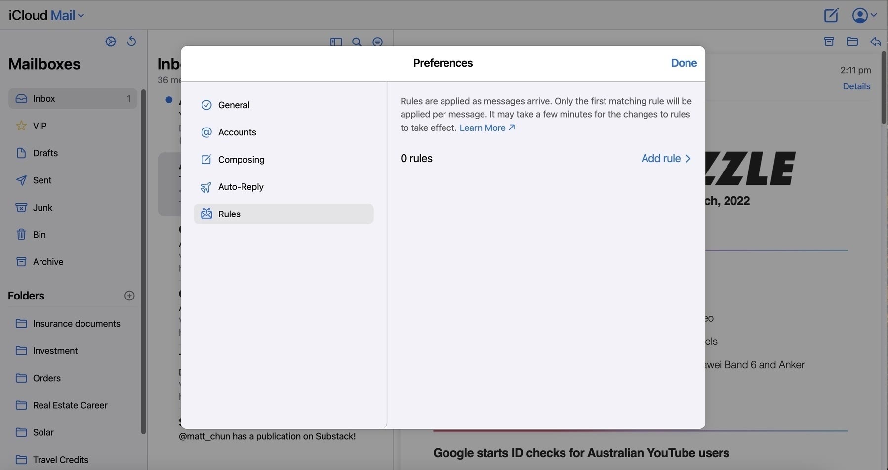 • For everyone that’s thought Apple iCloud email didn’t have server-side rules/forwarding, they apparently do now.