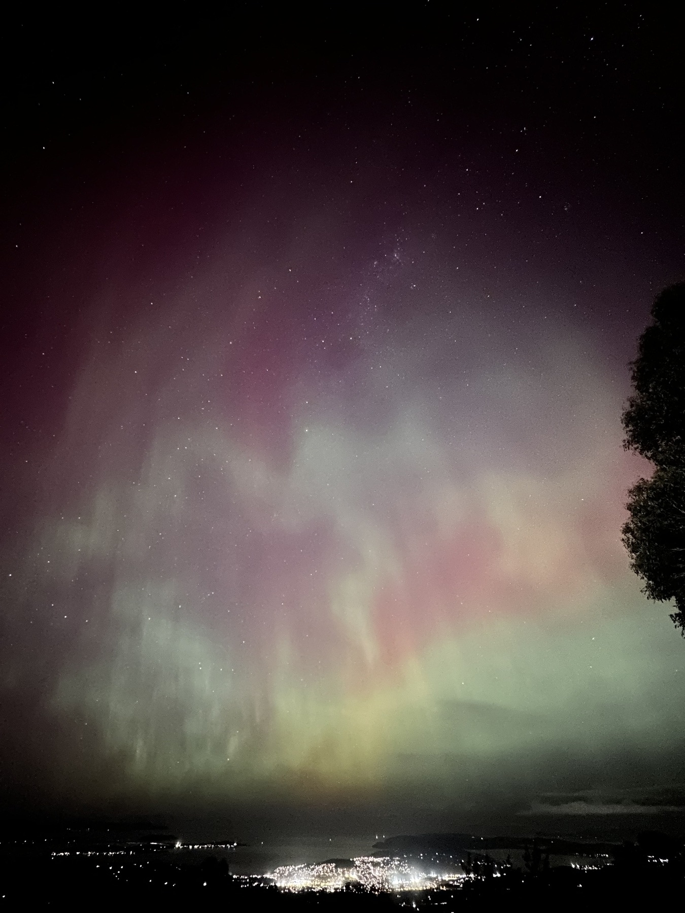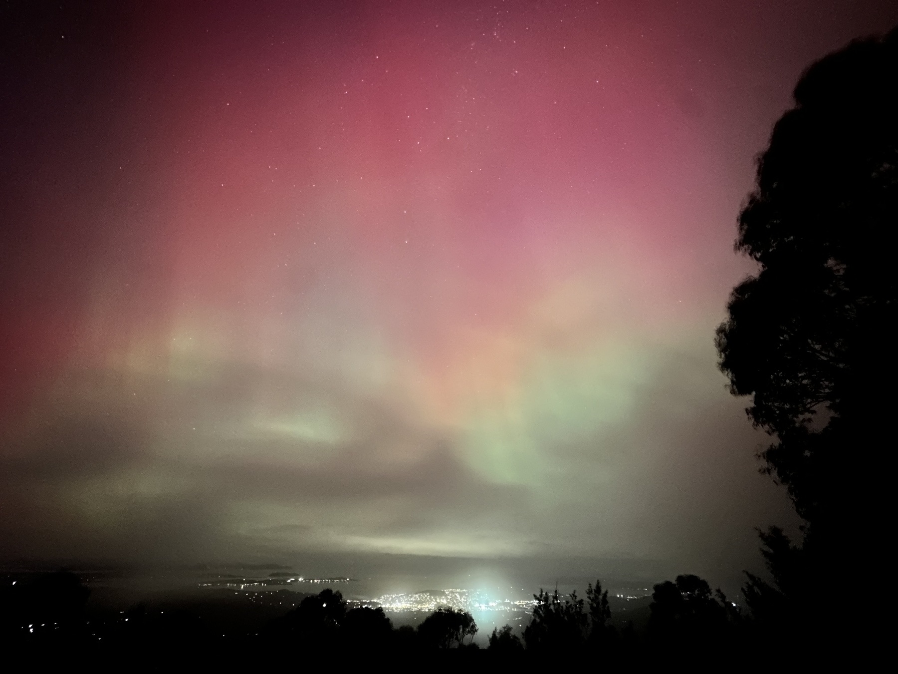 • The aurora australias, the southern lights, were a spectacle to behold last night aroundd Hobart, even with lots of cloud cover.