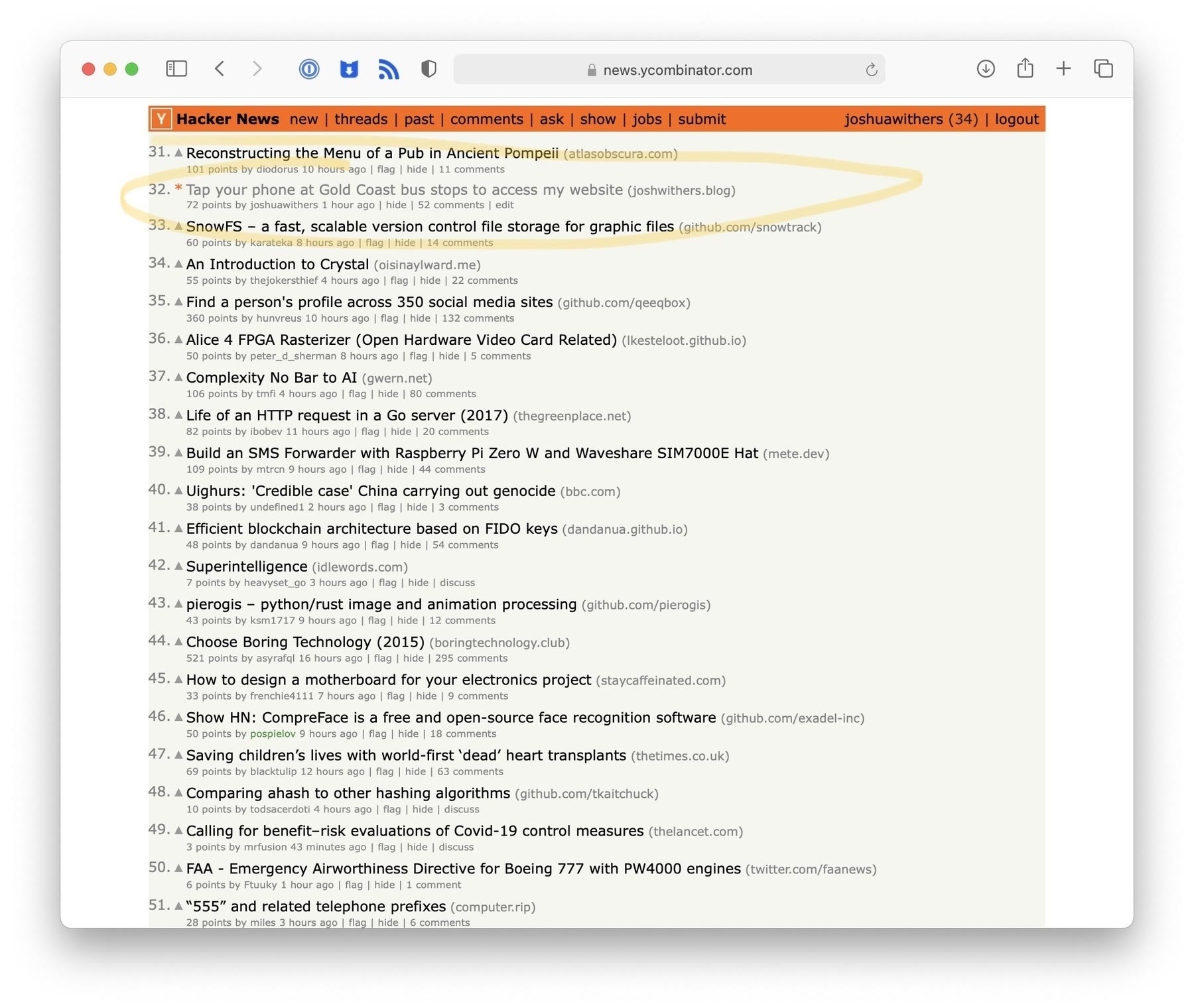• Minutes before this screenshot I was on the front page of Hacker News, which is all a nerd honestly wants in his life.
