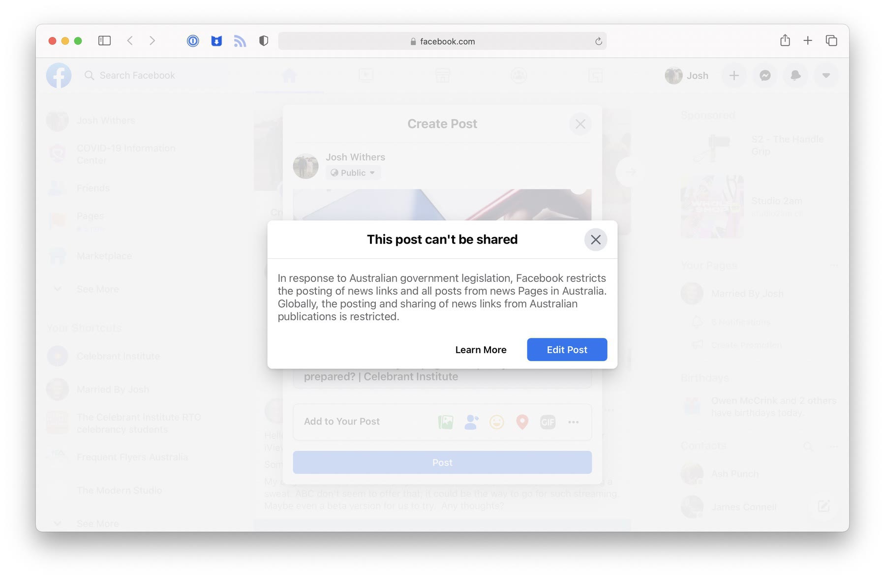 • The Facebook news ban hammer fell on our training business a day after I posted an article on surviving a Facebook ban lol ... you're great Facebook, thanks m8