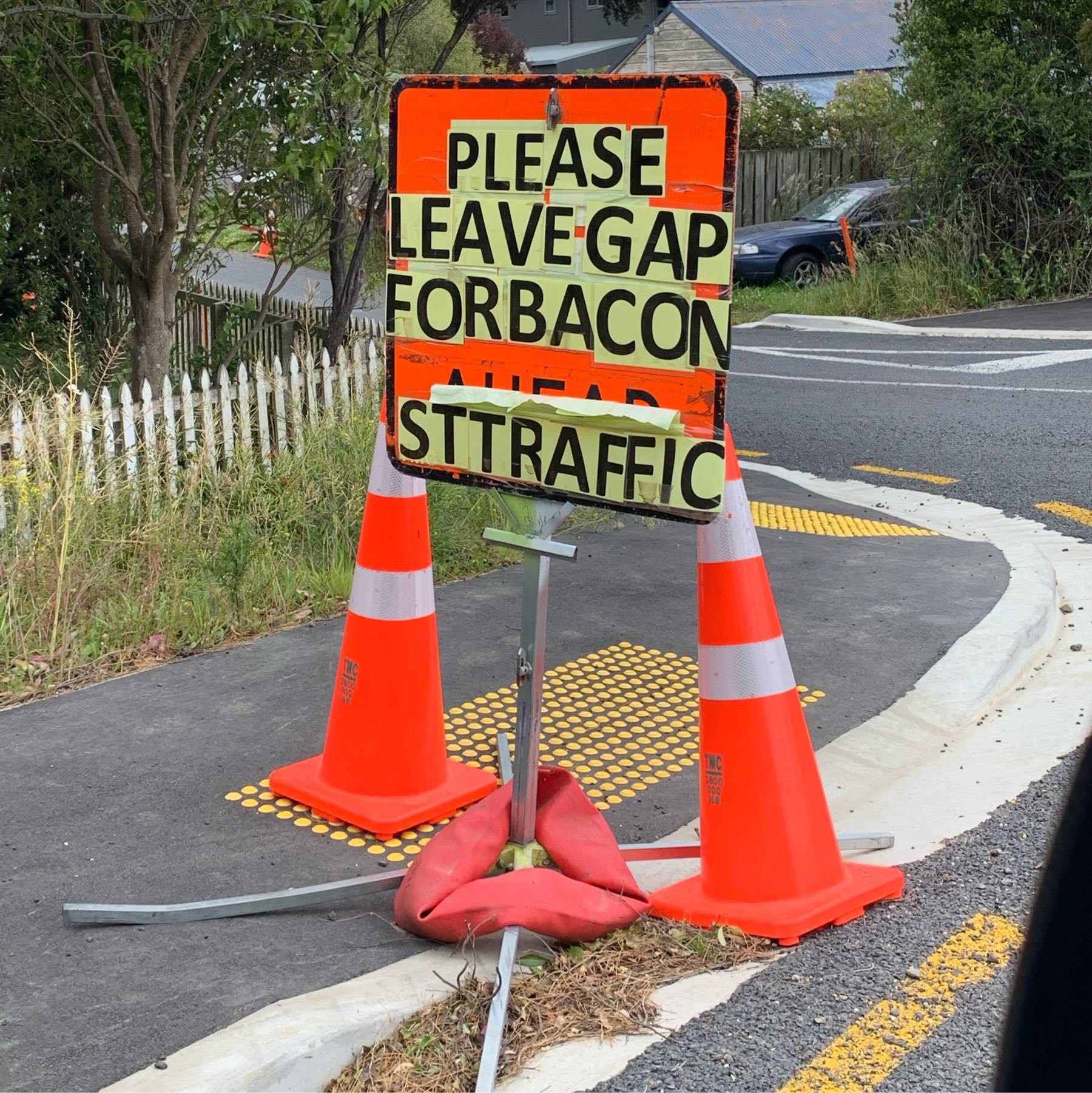 A local truth teller has scribbled out the T off the Tweed Heads northbound exit sign off the Pacific Motorway.