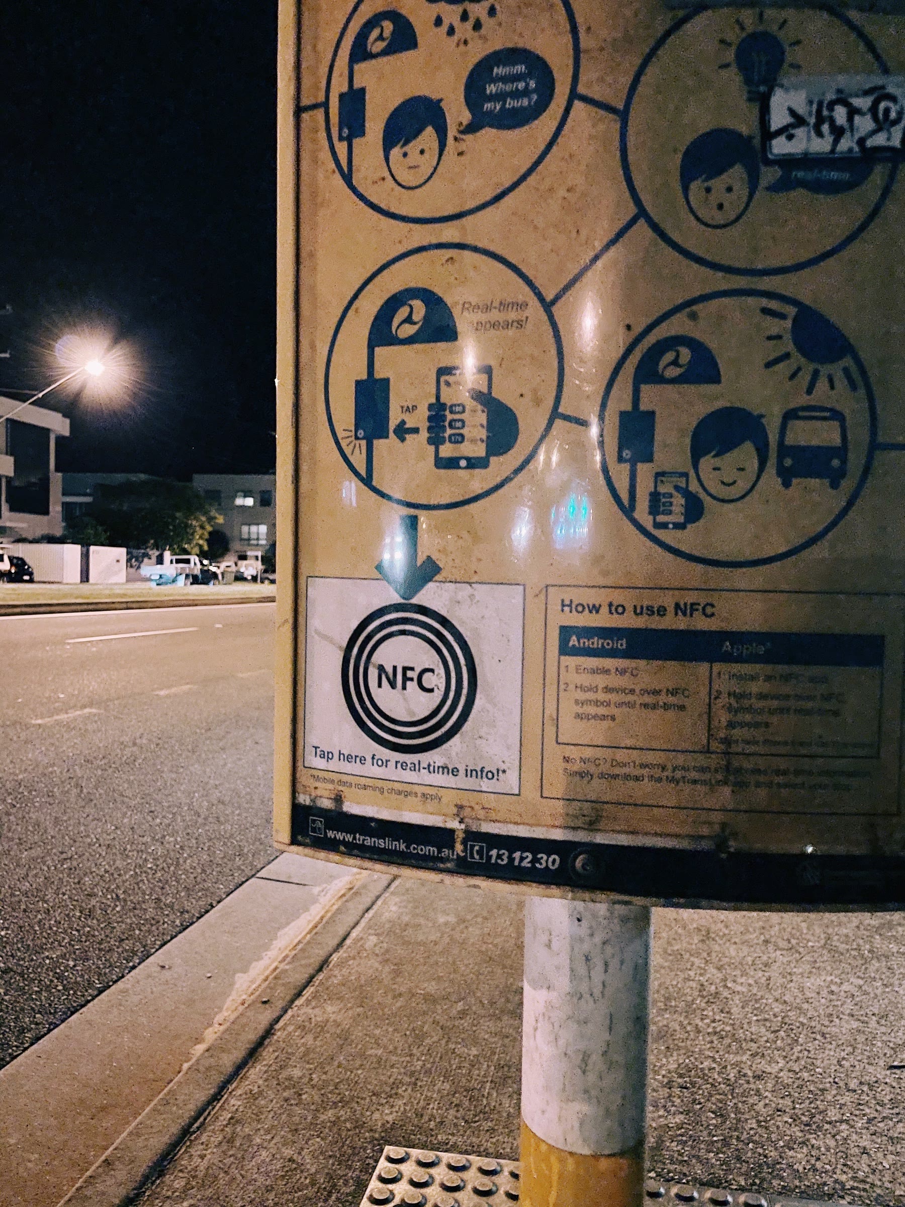 My February 2021 Apple Fitness challenge is to walk 227km in the month. So I was out late last night closing in on the target when I stopped and looked at the bus timetable sign at a local bus stop.