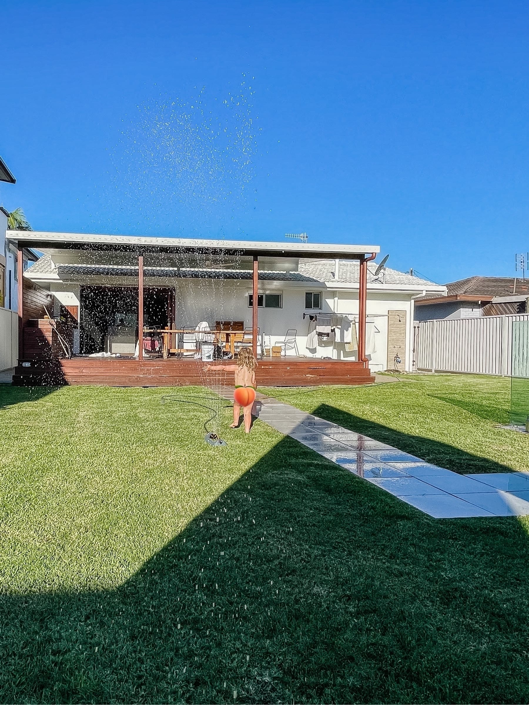 Introducing Luna to the great Australian tradition of running through sprinklers naked in summer