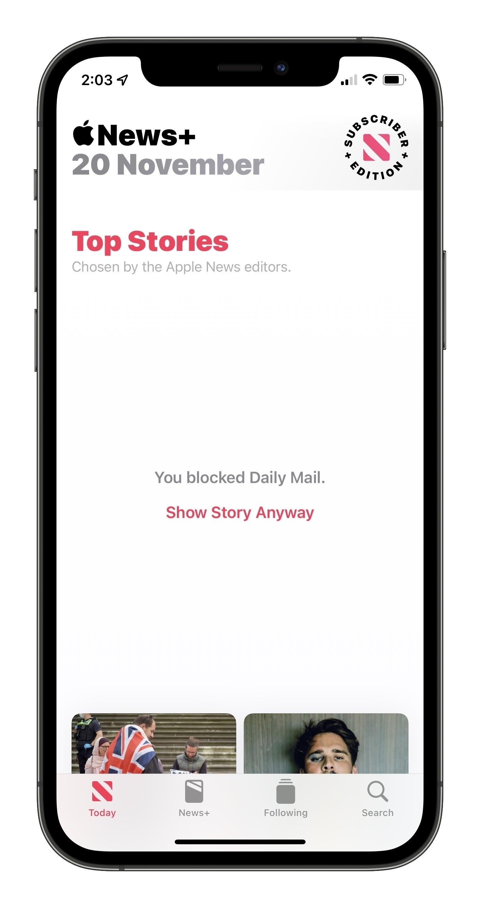Is this how Apple News is supposed to work? I make an active decision to not engage with content from a certain brand, and in its place I just get a full page notice that I’ve chosen to not engage with that brand?
