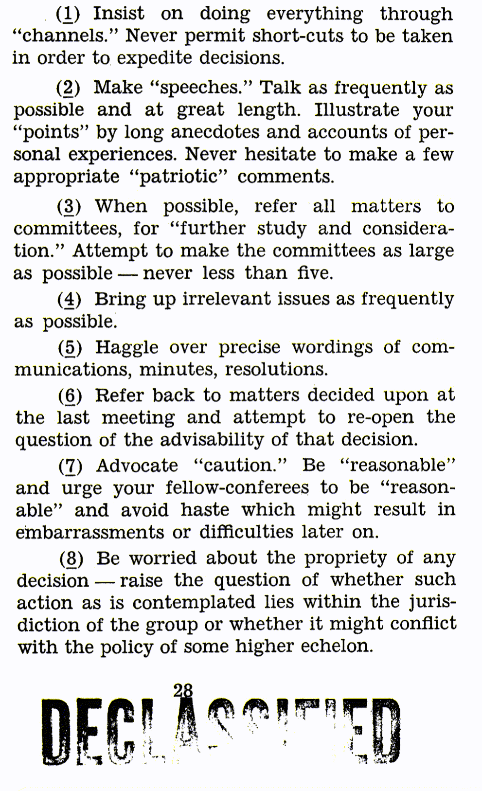 The “Simple Sabotage Field Manual,” declassified in 2008 and available on the CIA’s website, provided instructions for how everyday people could help the Allies weaken their country by reducing productivity.