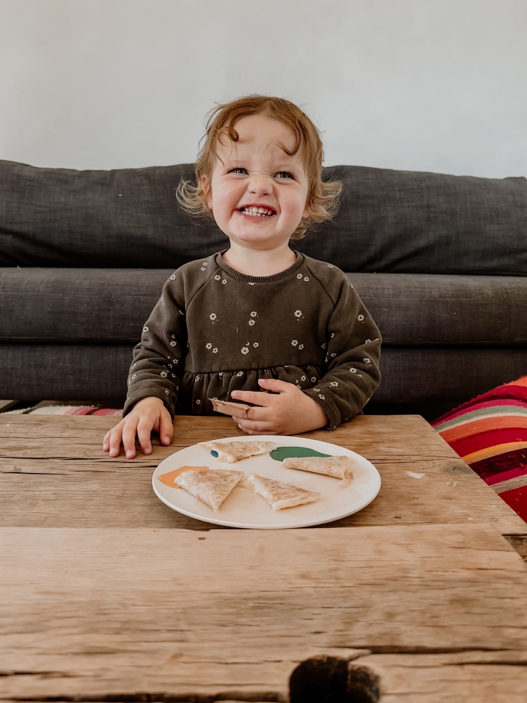 Help me name my new creation which I made for the kids for dinner tonight. It’s a quesadilla with leftover spaghetti bolognaise sauce and despite Luna’s objections, it’s great!