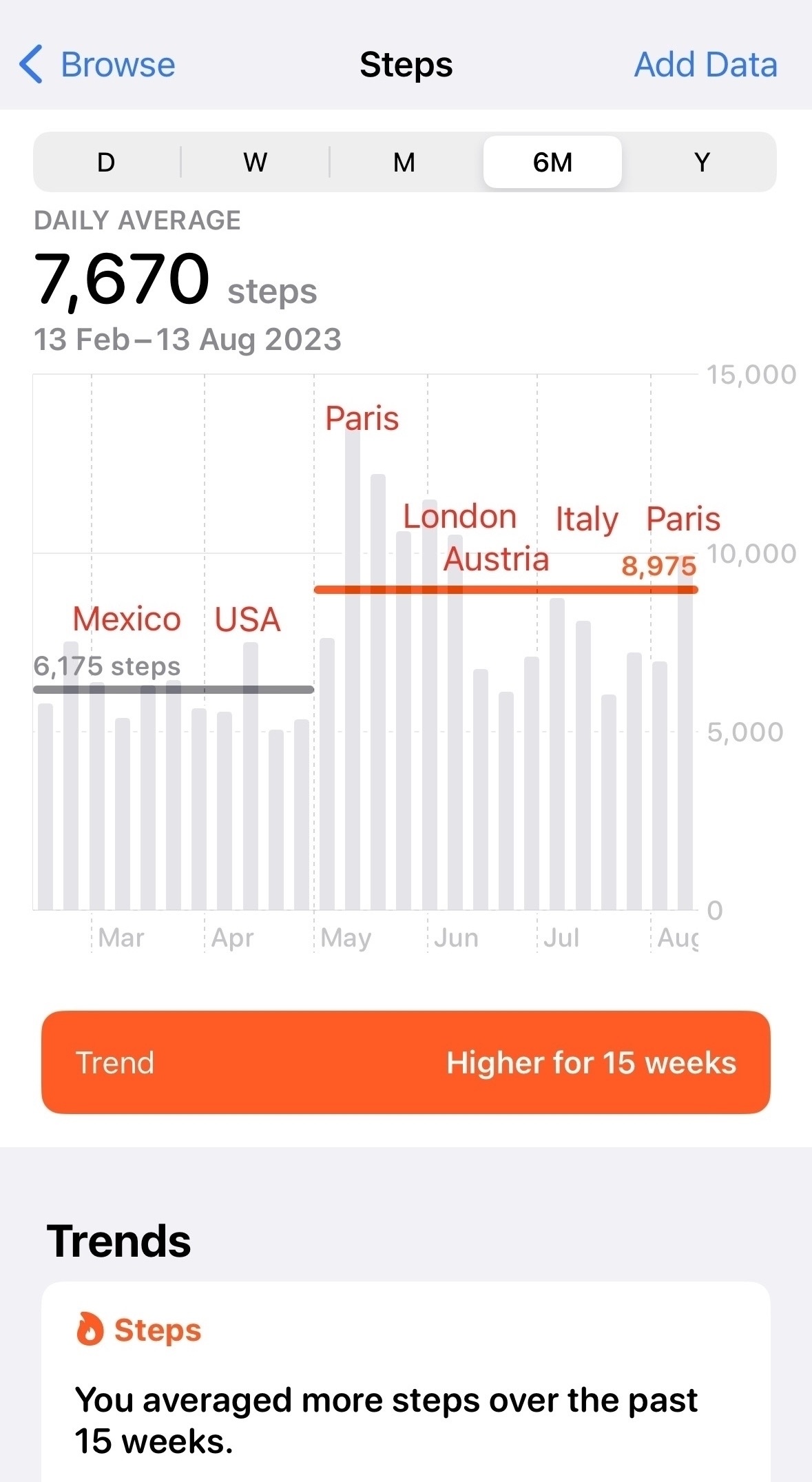 My daily steps over the past seven months